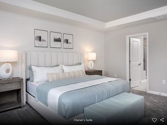 Spacious owner's suite with trey ceiling, recess lighting and walk in closet.