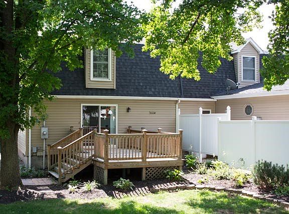 Brand new roof! Incredibly maintained, well-kept duplex! Roomy living area with attractive flooring. Charming kitchen features ample counter space, island with sink, and stainless steel appliances is open to a dining area with rear deck access! 3 bedrooms and a full hall bath occupy the upper level of the home. Spacious rear deck is perfect for relaxing and entertaining! Beautifully landscaped flower bed and large rear yard with privacy fence! Shop/garage duplex is also out back. Heat pump heating & air! Quiet neighborhood in convenient location!