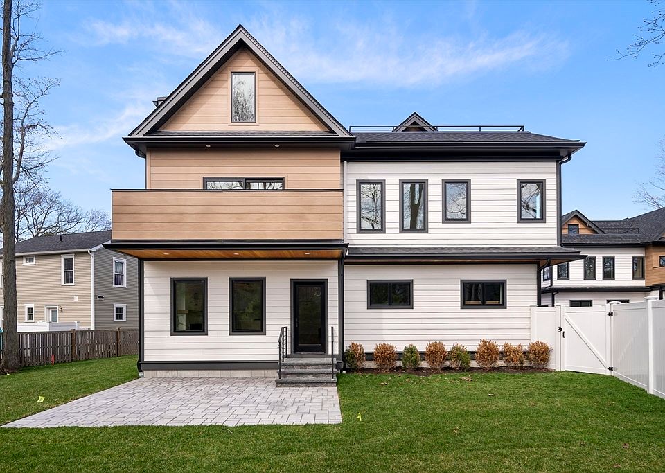A new construction gem just outside Auburndale Village featuring 4 bedrooms, 4.5 bathrooms, and 4000sf+ with 9.5" wide white oak engineered floors. The first floor open layout offers a spacious dining area and a chef’s kitchen with quartz counters, custom cabinets, and paneled Thermador appliances. The second floor includes 3 bedrooms, including a stunning primary with large private balcony, walk-in, and en-suite bath. The third floor has stunning roof lines, a full bath, and large private roof deck. The finished lower level offers additional flexible space and another full bath. Move right into this picture-perfect home with custom closets, large, flat yard, patio, 4-zone HVAC and EV-ready garage. This phenomenal location offers easy access to nearby walking trails, coffee shops, restaurants, Star Market, Trader Joes, and Whole Foods. Nearby commuter rail station and Green Line access, along with 90/nearby, making commuting a breeze!