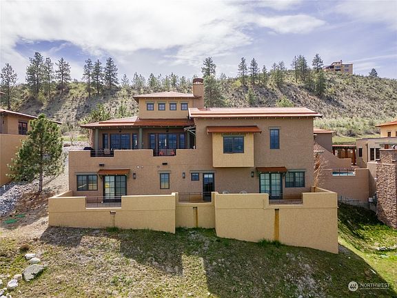 Find this meticulously designed residence on the 6th hole of the exclusive Bear Mountain Golf Course. Unparalleled north facing views of BM Golf course and pristine Lake Chelan. Southwest design of this home blends modern comfort, utility, and rustic charm. The main home includes 3 bedrooms & 3.5 bathrooms, features multiple fireplaces, 2 kitchens, media/theatre room, in-home gym, walk in closet, walk in shower, and 2 large decks ideal for entertaining or for serene relaxation. To complete this sought after property there is a detached 1 bed, 1 bath casita/ guest home ideal for company or perhaps a beautiful home office. Gated entry, walking trails and abundant wildlife complete this development. Oversized two car garage.