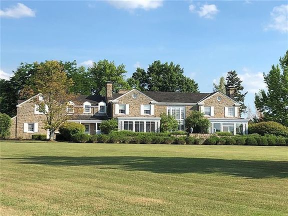 "Three Chimneys" is a classic stone Georgian five bedroom house on ten acres in Ligonier. Beautifully maintained and tastefully decorated, this house has very generous sized and welcoming rooms. Large light-filled foyer with double staircase has door to patio with views to the ridge. Elegant large living room has access to wonderful sun room and the dining room has access to large screened porch. Paneled den has media cabinet, fireplace and wet bar. Updated kitchen with marble countertops, storage galore, double ovens, warming oven, two dishwashers, gas cooktop and a cozy breakfast nook. This house is a real gem!