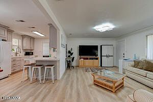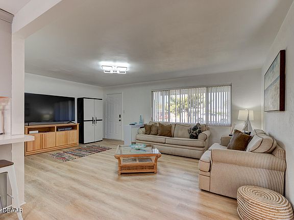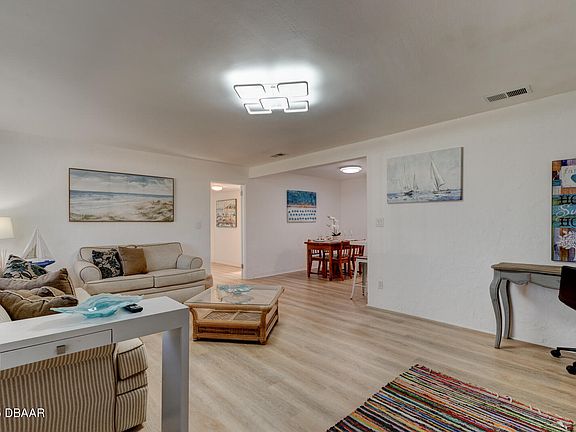 BEACHSIDE LOCATION! This home is fully FURNISHED & beautifully remodeled. Non flood zone, this 3 bedroom 2 bath split plan beach home is in the well loved area of Ortona. Mid century charm but with updates galore. The Large open primary ensuite has a remodeled bathroom with modern shower. The 2 guest rooms are separate with their own bathroom with a modern rain shower. The dining room leads out to a Florida room with lounge chairs, games and bicycle storage. This fully furnished home offers a big yard 70x125 and has plenty of room for you to build your outdoor oasis. Roof & water heater are 2019. Flooring has been updated throughout. Partial basement. The front of the home has a shady porch to sit and listen to the waves and feel the breeze while reading your favorite book. This home has so much style and character. The beach is right up the street. Get yourself a golf cart & fill it with beach toys for the trip up the street