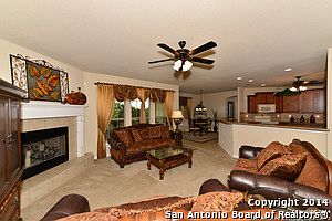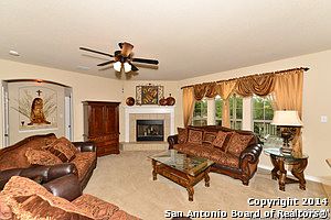 This home conveys pride of ownership! Over three acre lot in Mystic Shores with a greenbelt/country view, covered patio and extended deck...very private. Huge game room w/access to outside upper deck. Open kitchen w/island and eat-in kitchen. Main floor study and master. Large walk in closets, oversized tub and shower in m/bath, bronze fixtures, ceiling fans, high ceilings. Gorgeous Hill Country home. Curtains, drapes and rods do not convey.