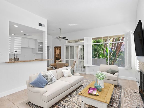 Ground level corner unit home in the highly desirable Seagate Colony neighborhood in the Laguna beach School District Boundaries. This 2 bedroom, 2 bathroom unit offers dual primary suites. Each bedroom has ceiling fans and walk in closets. Plus, each bedroom has an en suite bathroom with dual sink vanities for ample storage and counter space. The living area is light and bright and has an open feel due to the large windows and adjacent patio with larger slider. The fireplace cozies up the space and is encased in beautiful stone subway tile. The windows in the living area and bedrooms all have beautiful white plantation shutters. The kitchen has updated white shaker cabinets and a very beautiful neutral color granite. There’s an individual room just off the kitchen with a newer washer and dryer and more cabinets for linen storage. This home has a larger patio with low maintenance appeal with concrete and pavers. One detached garage is just around the corner. This home is a must see and will not last long!