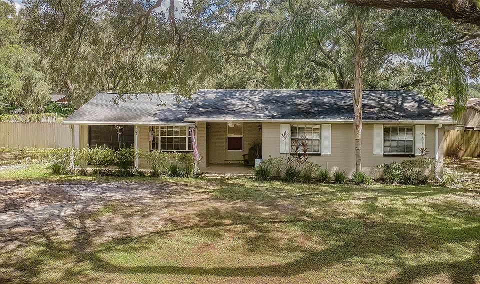 If you want lots of land, no HOA, and a peaceful private environment you have found it! This unique property in the heart of Brandon sits on almost a full acre on a dead end street with large oak trees offering shade for the home and cost savings to you. It is just off John Moore and yet is minutes away from shopping, restaurants and the expressway! The fully fenced back lot can be accessed through a 12' gate and is hard packed making it easy to drive on large heavy vehicles and RV's. And it comes with lots of extras, an oversized two car garage, a large two car port, and several additional storage sheds. This property is perfect for someone who needs room to spread out or has work vehicles. Bring your toys! The home features three bedrooms with large closets, two bathrooms, a sunroom with wood burning fireplace, a large family room with parquet floors and an eat in kitchen with stainless steel appliances and bay window. The one car attached garage has been converted into a wonderful storage room.