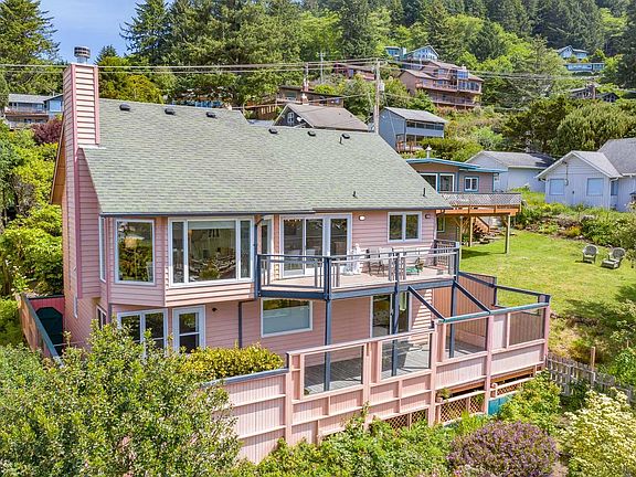 GREAT OCEAN, BAY & MOUNTAIN VIEWS FROM THIS DOWNTOWN LOCATION IN YACHATS. WELL MAINTAINED HOME WITH ROOM FOR GUESTS AND LARGE DECK FOR ENTERTAINING: LOTS OF UPGRADES: NEWLY PAINTED EXTERIOR; NEW FLOORING UPSTAIRS & DOWNSTAIRS; NEW FIREPLACE INSERT; LARGE SOAKING TUB IN MAIN BATH; NEW WINDOW COVERINGS; NEW TREK DECKING FRONT AND BACK; NEW WINDOW AND SLIDER IN DOWNSTAIRS BEDROOM; NEW GUTTERS; NEW GLASS ON DECKS. DEN WITH BOOKSHELVES. COME BE APART OF THIS WONDERFUL COMMUNITY AND LIVE IN A LOVELY HOME.