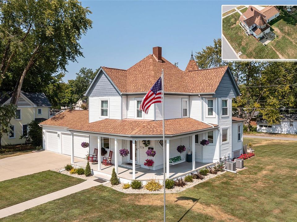 Stunning, renovated 2-story situated in the heart of the OFallon Downtown District. 2020-2021 Updates seamlessly blends modern elegance w/ historic charm. Every corner of this home has been thoughtfully upgraded: plumbing, electric, dual HVAC systems, ductwork, windows, plaster, paint, doors, trim, oak hardwood, plush carpeting and stylish tile. The grand banister showcasing the original newel post from 1904 has been fully updated to code. Brand-new, stylish & functional kitchen: sleek white cabinets, stunning granite countertops, island w/ a butcher block top & bar seating. Main level: formal dining/office, open family rm. Back entry: 1/2 bath, laundry rm, walkin pantry. 2nd level: Serene primary suite: 2 closets, renovated bath featuring soaring turret ceiling. 2 well-sized guest bdrms along w/ guest bath. 24’x36’ 3 car garage, New in 2020. Exterior: New wrap around porch (trimmed limestone lentils). Plenty of outdoor space on your corner lot w/ a flat usable large backyard.