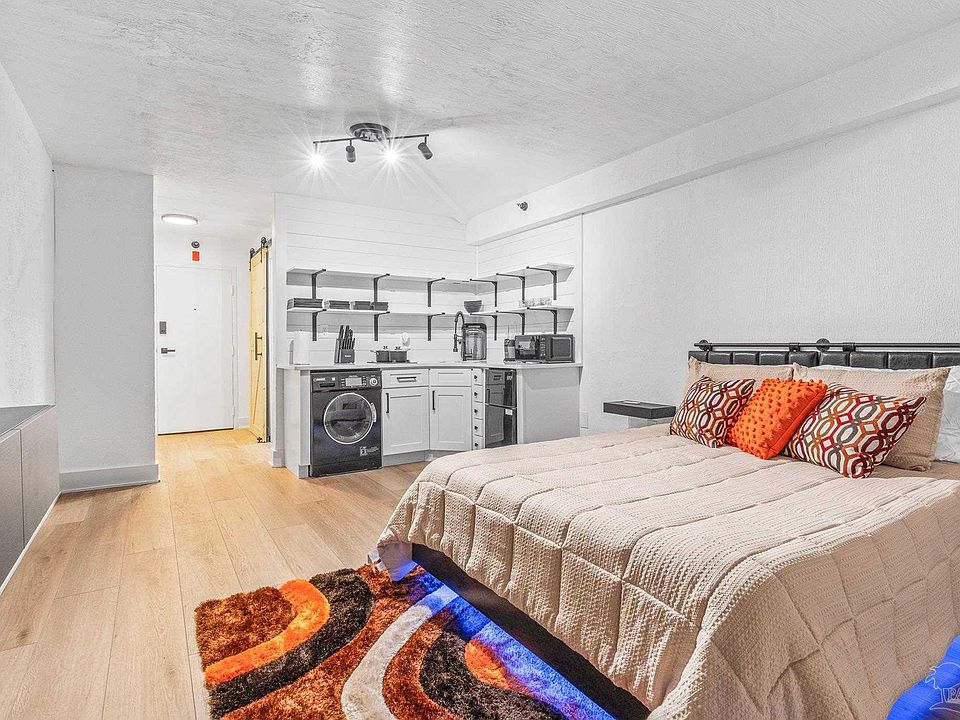 Step inside this fully updated studio unit in centrally located Carlton Palms. Being sold fully furnished, this condo is perfect for those wanting to be close to downtown or those looking to invest in a rental property in a central location. This condo is recently updated with granite counters and new cabinets in the kitchen and a completely renovated bathroom. New appliances include new cooktop, fridge, air conditioner, and all-in-one washer and dryer. New luxury vinyl plank flooring completes the modern look of this unit. Carlton Palms has both an outdoor and indoor pool for year round recreation. Schedule your showing today!