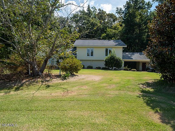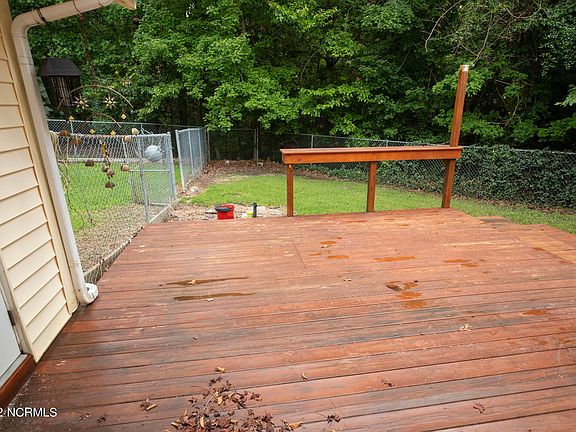 Desireable ''split level'' floor plan on an oversized lot in the popular Carolina Pines community. Conveniently located between New Bern and Havelock. New carpeting in the living room and new laminate flooring in the family room. Classic formal entry foyer. Stainless steel appliances in the kitchen. The rear of the home features a spacious deck that overlooks a fenced in yard. Covered parking for three vehicles provided by an attached single car garage and a carport which easily accommodates two large vehicles. The home is not located in a flood zone and there is no Homeowners Association. In that Carolina Pines is not located in a munincipality, county taxes are only $1036.10/year.. Low maintenance vinyl ad brick veneer exterior. Homeowner is providing a one year America's Preferred Home Warranty.