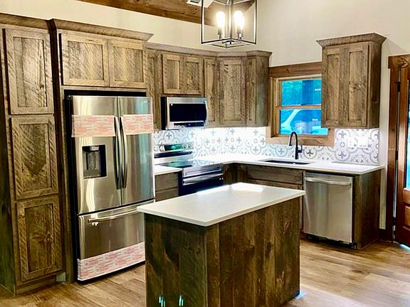 Located just minutes from the Coosawattee and Cartecay rivers, several apple orchards, and 14 miles from charming downtown Ellijay, this modern rustic cabin has three bedrooms and two bathrooms. The large master suite has a beautiful walk in shower and double vanity. Split floor plan offers privacy with the other two bedrooms and bathroom on the opposite side of the cabin. The great room is comprised of the stainless steel fully applianced kitchen, dining area, and spacious living room with vaulted ceilings and a wood-burning fireplace. Ceiling fans throughout. Large laundry room with washer & dryer hook ups and a large storage closet. Back porch offers a peaceful, quiet place to relax with another vaulted ceiling and outdoor fan for comfort. This lovely, unfurnished cabin rests on three very private wooded acres in a small gated cabin only community. Easy access with paved roads and paved driveway. Well water included. Rent is $2,500 + utilities