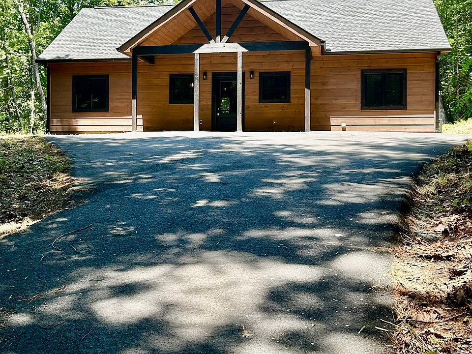 Wood-burning fireplaceBack porchSplit floor planWalk in showerPaved roadsVaulted ceilingsLarge master suite
