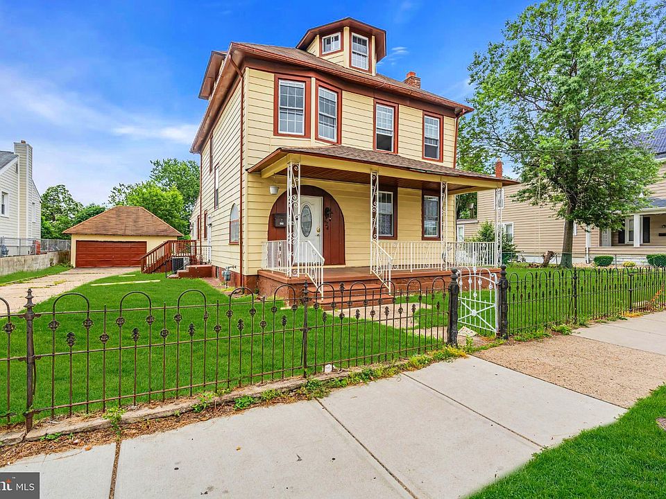 Rare opportunity in Riverside! This spacious 4-bed, 2.5-bath home combines historic charm with the everyday conveniences buyers crave. Situated just steps from all three local schools and within walking distance of shops and the River Line train, the location is as practical as it is charming. Unlike most homes in town, this property delivers what everyone wants but rarely finds: a long private driveway, two-car garage, a full multi-room basement with outside entrance, and a large backyard perfect for gatherings. Inside, enjoy over 2,200 sq ft of living space, freshly painted walls, and brand new carpet installed in 2025 (photos taken prior to installation) throughout. The living room flows effortlessly into a cozy den with original pocket doors — ideal for entertaining or quiet evenings at home. Upstairs, you’ll find generous bedrooms and the bonus of an upstairs laundry, a feature almost unheard of in homes of this era. The basement offers endless potential with multiple rooms for storage, hobbies, or finishing to suit your vision. Step outside to the back porch and yard, where there’s more than enough room for play, gardening, or simply unwinding in privacy. Recent upgrades include a new central HVAC system (2022) for comfort and efficiency. Don’t settle for a smaller home with no parking or basement. This one checks the boxes most Riverside buyers have been waiting for — size, storage, parking, and an unbeatable location near schools and transit. You can picture it now. So bring your furniture, hang a few paintings, and sit back and relax! Welcome home.