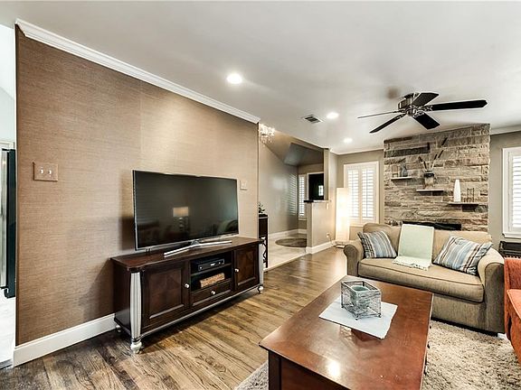 Back on Market - No Fault of House. This beautifully updated home features vaulted ceilings in entry & kitchen. Large kitchen w granite counters, island, gas range, double ovens & skylights. Plantation shutters throughout, hardwood floors and stone fireplace in living, drool worthy master bath with large walk in shower, 2 shower heads & double vanities. You'll love entertaining in the lush back yard w wood fence for privacy, sprinkler system, & a pergola that's wired for TV plus a misting system to keep you cool! Detached garage.