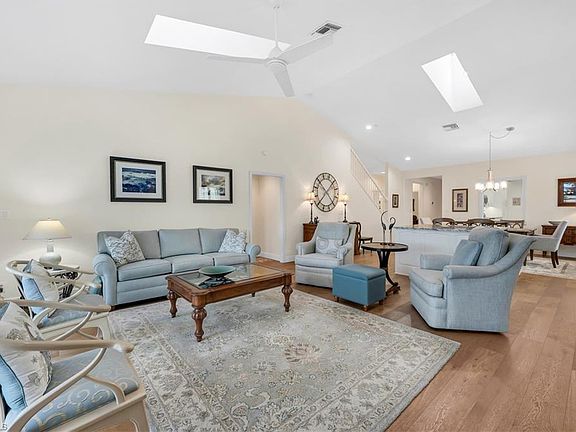 Beautiful long lake and golf course view. We are proud to feature this renovated, spacious 3 bedrooms, 3 bath home which features nearly 3000 square feet of under air conditioning living space! Located on the 6th hole of the Wyndemere Gold Course. The lanai features a swimming pool and spa with spectacular views. As you walk through the entrance of the home, you will immediately notice the contemporary feel highlighted by white oak wood flooring. Three skylights bring a warmth to the great room and a well placed center island features a wine refrigerator. The primary suite includes sliding doors to the lanai, walk-in closet and recently refurbished bath area. The second floor offers a second primary suite, approximately the same size as the primary suite, along with a renovated bath area with both a shower and a separate free standing tub. The third bedroom/den also includes its own au-suit. An oversized kitchen features stainless steel appliances and ample counter space. Wyndemere Country Club has been awarded the Platinum Club statis and is conveniently located minutes to the beach and downtown Olde Naples. Wyndemere offers a 27-hole golf course which was designed by Arthur Hills, 10 Har Tru tennis courts, 7 pickleball courts, bocce, croquet, fitness center and restaurants.