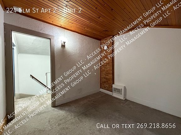 224 Elm St Apt 2 is a one bedroom unit located on the upper level of this large, historic duplex. This unit features a large kitchen with dining area, full bathroom, a large living room and a bedroom. Upon entry you immediately go up stairs to the landing. The first room is located at the top of the stairs. The kitchen is located down the hall and includes range, oven and fridge. There is plenty of room in the kitchen for a dining table, too. The hallway off the kitchen continues to the west where you will find a large open room with tall ceilings and a connected full bathroom. Tenant pays for trash. Tenant also pays $35/mo for water/sewer in addition to the rent. Gas, Electric, lawn care and snow removal are included. No Pets and No smoking! "The rental or lease of this property must comply with the City of Kalamazoo ordinance regulating the use of criminal background checks as part of the tenant screening process to provide individuals with criminal backgrounds a fair opportunity. For additional information please contact the City of Kalamazoo Civil Rights Board." $35 Water Sewer Charge Monthly $50 Application Fee Per Adult Covered Porch Driveway Shared Gas Included! No Laundry Facilities No Smoking! Not Pet Friendly Security Deposit Equal To 1 Month's Rent Snow Removal Within 24 Hrs Of Snowfall Included Tenant Pays Trash