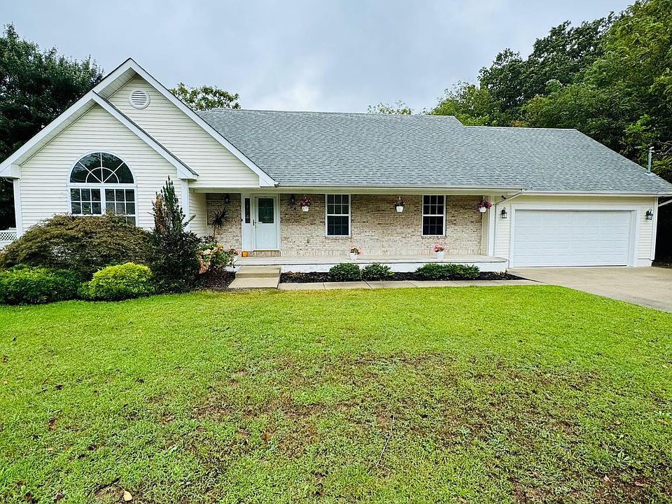 Nestled on a generous 0.66-acre lot, this charming ranch-style residence offers a harmonious blend of luxury and comfort. Built in 2005, this home showcases a meticulously maintained interior and exterior. Step inside to discover an open floor plan and high ceilings that seamlessly connects the living and kitchen areas, creating an ideal space for both relaxation and entertaining. The heart of the home features a spacious eat-in kitchen, complete with a breakfast bar that invites culinary creativity. Natural light pours in through thoughtfully placed windows, enhancing the inviting atmosphere. The living area boasts a cozy gas fireplace, perfect for those chilly evenings. The home includes three well-appointed bedrooms and two full baths, the large primary suite features a walk-in closet and ensuite bath, The partially finished basement provides additional space for recreation or storage, while the main floor laundry adds to the home's practicality. Step outside the sliding doors to your private oasis, where a fenced in rear yard and above-ground pool awaits, perfect for summer gatherings or quiet afternoons soaking up the sun. The expansive rear yard is cleared and ready for your personal touch, whether it be a garden, outdoor entertaining area, or simply a space to enjoy nature. Additional structures, including a greenhouse, poultry house, and two sheds, offer endless possibilities for hobbies and storage. The exterior of the home is equally impressive, featuring tasteful landscaping, exterior lighting, and a front yard lawn sprinkler system that keeps your outdoor space lush and vibrant. An attached two car garage with additional storage area and a driveway that accommodates multiple vehicles provide convenience and ease. This property is not just a home; it's a lifestyle. Experience the tranquility of rural living while being just moments away from modern conveniences. Perfect for health care workers who need to be minutes from the hospital.