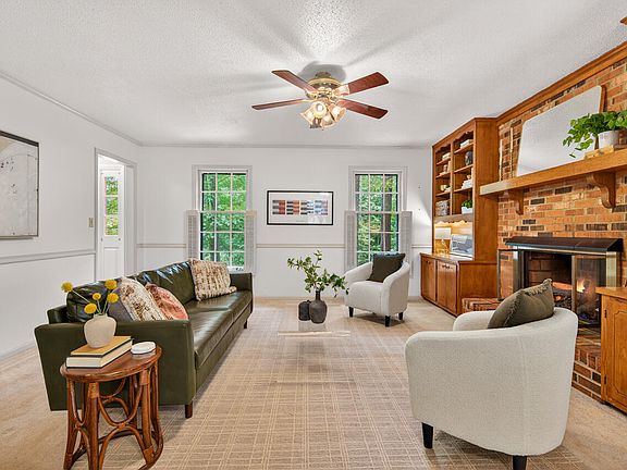 Serene half-acre retreat nestled at the end of the road in Huckelberry Heights. Aptly named, this friendly community transports you to a bygone era where neighbors still wave hello and nature is waiting be explored! Inside, rustic elements compliment whimsical colors - striking a perfect balance between modern and retro. Custom built-ins and a gas fireplace with brick surround are the focal point of the spacious living room. Bamboo flooring and beamed ceilings ground the large upstairs bedroom the owner used as the primary bedroom. Wired, detached 2-car garage with sink and second-story is the ultimate workshop. Updates include a newer roof (2019) and water heater (2018). The private wooded lot is vibrant with wildlife and wild flowers. Neighborhood trails connect to Valley Springs Park and Eno River State Park, which is one mile away. Experience for yourself what sets this neighborhood apart!