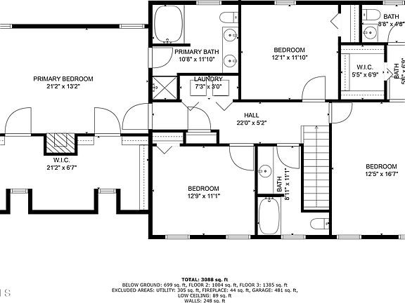 Two primary suites, each with full ensuite bathrooms and large walk-in closets