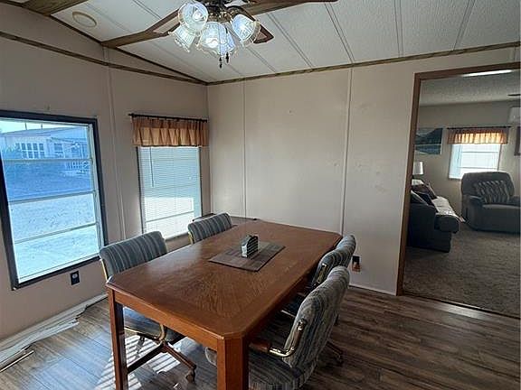 Enjoy easy living in this beautiful 1 bedroom, 1.5 bath Park Model located in the highly desirable Wagon City North 55+ Community. This home features a spacious add-on living area perfect for relaxing or entertaining, convenient inside laundry, covered porch and a handy storage shed for all your extras. The primary bedroom includes a private bath, and there’s also a half bath for guests. A bright, open layout brings in plenty of natural light, creating a warm and welcoming atmosphere. This home comes fully furnished with furniture and all appliances including the washer and dryer. This friendly, active community offers great amenities and a wonderful sense of neighborhood—ideal for full-time living or a perfect winter retreat.