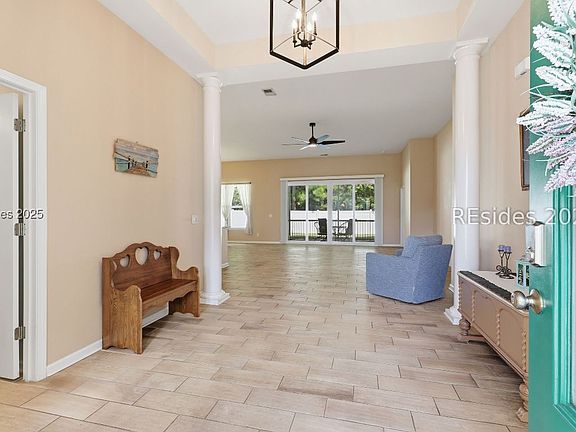 Amazing home with very desirable open floor plan. Grand double doors open into the large foyer with tray ceilings and entry columns. Large granite countertop kitchen with breakfast bar. Very spacious 3 bedroom, 2.5 bath with large owners suite including shower and separate spa-sized tub. 11' ceilings throughout. Expansive sliding glass doors leading to a beautiful screened-in porch, perfect for relaxing or entertaining. Enjoy the benefits of a natural gas range and tankless water heater. The home is minutes from the New Riverside Barn park, downtown Bluffton and Savannah.