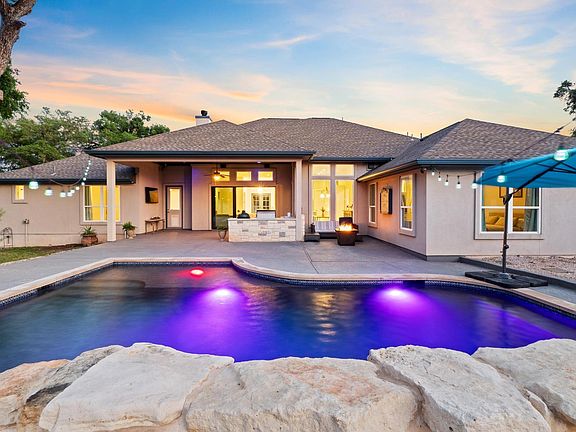 Discover your own private retreat in the sought-after city of Leander, Texas, within the Liberty Hill School District! This stunning four-bedroom, three-bathroom home boasts an impressive 3,187 square feet of living space, perfectly designed for modern living and entertaining. Situated on a sprawling one-acre lot, this property offers an exceptional blend of space, privacy, and a coveted location backing directly onto the expansive River Ranch Park. Step inside and be captivated by the bright and airy open floor plan complete with wall to wall patio doors, seamlessly connecting the main living area to the outdoor oasis.These expansive doors not only illuminate the interior but also provide breathtaking views of your private pool and direct access to the beauty of River Ranch Park. The gourmet kitchen has been thoughtfully designed within double ovens, stainless steel appliances, custom Knotty Alder conditioned cabinetry, and a large island. Truly a chef's dream! The luxurious primary suite features a spa-like ensuite bathroom complete with a one of a kind walk-through shower. This thoughtfully designed space offers both style and functionality, creating a serene environment to unwind after a long day. Outside, the one-acre lot provides endless opportunities for recreation and relaxation. Imagine enjoying sunny afternoons by your private pool, hosting barbecues on the patio with a full outdoor kitchen, or gathering around the fire pit. With direct access to River Ranch Park, outdoor adventures are right at your doorstep, offering miles of trails, green spaces, and recreational facilities. This exceptional property offers the perfect combination of a beautifully appointed home with desirable features, a generous one-acre lot, and an unparalleled location. Don't miss the chance to own this Leander gem where luxury meets lifestyle.