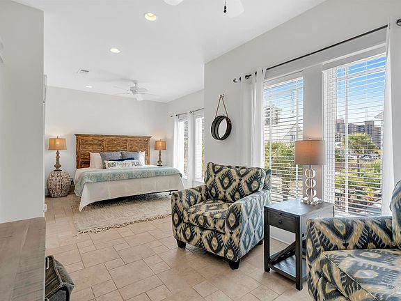 Welcome to one of the most desirable locations on the island—where beach days, boat days, and coastal living come together. This low-density, gated community is perfectly positioned on Ole River and within walking distance to the white-sand beaches, the legendary Flora-Bama Lounge, and just a quick boat ride to the Gulf of Mexico. With no rental restrictions, this property offers excellent potential for a vacation rental or second home. Enjoy the convenience of your private boat slip with lift, located only yards from the home. This residence features standout curb appeal with its coastal colors and inviting porch. Inside, you'll find soaring ceilings, abundant natural light from numerous windows, wood and tile flooring throughout, crown molding, and beautifully appointed spaces. The floor plan offers generous room for family and guests with four bedrooms plus a loft currently used as a fifth bedroom. The recently renovated kitchen is a showpiece with new stainless appliances, quartz countertops, subway tile backsplash, and a custom built-in dining bench. When it’s time to unwind and enjoy stunning Gulf Coast sunsets, take the private elevator down to the screened-in porch or the covered back deck—perfect for relaxing, grilling, or entertaining. Ample storage is available underneath the home for vehicles, fishing gear, paddleboards, kayaks, and all your water toys.