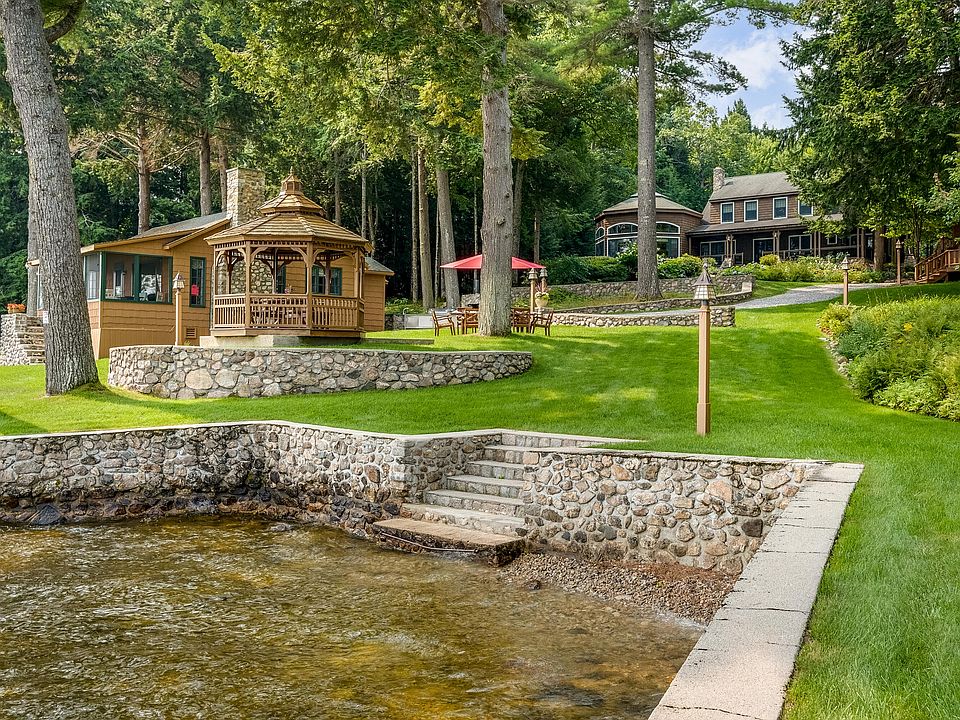 Privately nestled on over 7 acres of dramatic, unspoiled waterfront, this extraordinary family compound commands breathtaking, panoramic views of Long Lake. A rare offering, the estate seamlessly blends refined comfort, timeless architecture, and lakeside charm—creating a sanctuary designed for unforgettable gatherings and multigenerational enjoyment. At the heart of the property lies a magnificent main residence, meticulously crafted to maximize the natural beauty of its surroundings. Expansive windows and open-concept living spaces invite the outside in, capturing golden sunsets and the shimmering dance of light across the water. Tucked amidst the trees, whimsical guest suites—designed like luxurious tree houses—offer guests privacy and enchantment, while a spacious detached garage features an upper-level guest apartment perfect for extended stays. Adding to the magic is a beautifully preserved waterfront cottage, seemingly suspended above the lake. A nod to a bygone era, it has been lovingly updated while retaining it's charm. An elevated outdoor kitchen and lounge area is ideal for alfresco dining, cocktail hours, and summer soirées under the stars. Lobster bakes with Maine's finest catch or pizzas in the wood-burning oven are enjoyed at the lake's edge in the gazebo. No lakeside retreat would be complete without a boathouse, large enough to accommodate all the toys, tools, and vessels that define life on the water. Whether launching kayaks at dawn, cruising at sunset, or hosting lakeside events, this property is tailor-made for making memories. This is more than a home—it's a legacy estate, a setting for celebrating life's most treasured moments with friends and family, season after season, year after year.