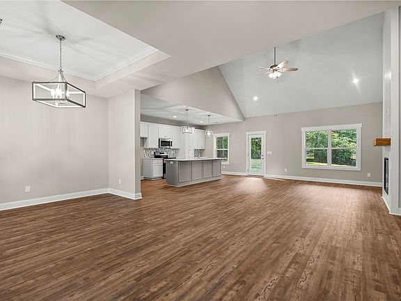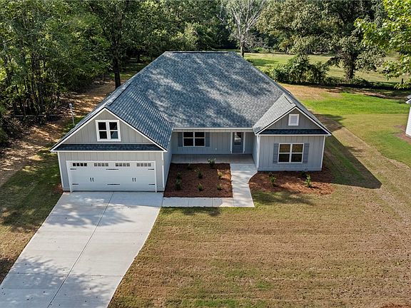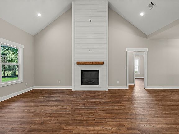 This stunning 4-bedroom, 2-bath craftsman style home sits on a half-acre lot and has all the features you've been dreaming of. Step inside to an open floor plan featuring specialty ceilings and seamless LVP flooring that flows throughout the house. The living room is warm and welcoming with a gorgeous floor-to-ceiling shiplap electric fireplace with a cedar mantle - a striking focal point that can be admired from the kitchen. The kitchen boasts an abundance of custom cabinets, quartz countertops, stainless steel appliances, a farmhouse sink, and a show-stopping blue-grey backsplash. The spacious dining room is open to both kitchen and living room, creating the perfect flow for entertaining or everyday family gatherings. A large window fills the space with natural light while offering a beautiful view of the front yard. Retreat to a luxurious master suite, highlighted by a barn door entry into the master bath, double vanity, soaking tub, and a large tile shower with seamless glass doors. The oversized walk-in closet offers ample shelving and a built-in shoe ledge. 3 additional bedrooms provide generous space and storage for family or guests. Enjoy outdoor living on the large covered back porch overlooking a spacious yard-perfect for play, entertaining, or relaxing evenings. Don't miss the chance to make this beautiful home yours today!