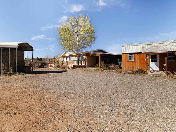 A Versatile Northern New Mexico Ranchette on 3.79 Acres Discover space, privacy, and boundless potential in this 3 bed / 2 bath home set on three separately deeded lots totaling 3.79 acres. With wide-open views, generous outdoor living, and a layout that adapts easily to your lifestyle, this property is ready for horses, hobbies, or your next creative venture. A welcoming home anchors the land, featuring a bright, comfortable floor plan and a wraparound deck on two sides—perfect for morning coffee, sunset unwinding, or simply taking in the mountain light. The property includes multiple sheds and corrals, a private well, fresh interior paint and plenty of room to expand, garden, or build. Each parcel has a shed with electricity and water at it. The large hay storage shed will convey with the property as will the separate studio shed currently being used an office/training space. There is also a tac room with electricity and an attached hay barn. Already operating as a successful dog-training and boarding business, the infrastructure is in place for continued use, or easily reimagined for horse property, home-based business, or multi-generational living. This rare offering checks all the boxes: views, acreage, flexibility, and no compromises on privacy and very few restrictions. Whether you’re seeking a functional small ranch, business opportunity, or a peaceful homestead with room to roam, this property is ready to meet you where you are.