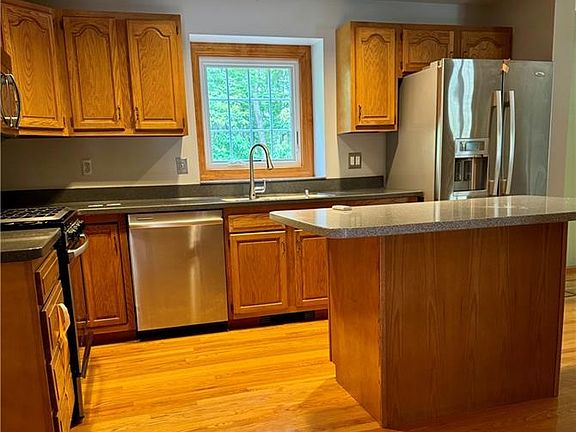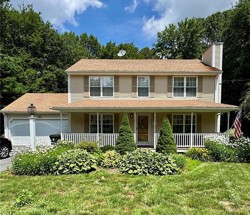 Move right in to this beautiful 3 bedroom home with a welcoming farmer's porch in a lovely neighborhood of single family homes. Much of Burrillville is rural, but you'll notice a quiet, suburban feel in this development. The home has hardwood floors throughout the first floor and on the interior stairs, and a modern kitchen with stainless steel appliances. A large living room opens onto a good size deck for your outdoor entertaining. A half bath on the first level doubles as a laundry room. The primary bedroom has a walk in closet and shares a large bathroom with the two additional bedrooms. The home is surrounded by beautiful landscaping, and stays well hydrated, thanks to underground sprinklers. The home is heated with oil, but propane supplies the fuel for the gas range, fireplace and outdoor grill. A generator comes with the house, providing peace of mind in the event of a power outage. This home is waiting for you!