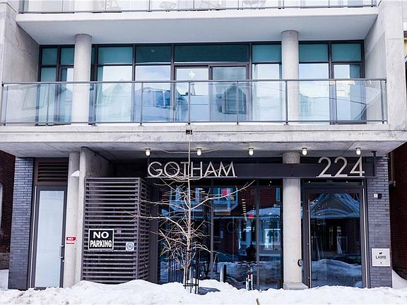 Gotham Condo with balcony located in Downtown Ottawa. Open concept kitchen with quality stainless steel appliances, Hardwood flooring, exposed concrete ceilings and walls. Close to all amenities, easy access to shopping mall, restaurants and LRT.