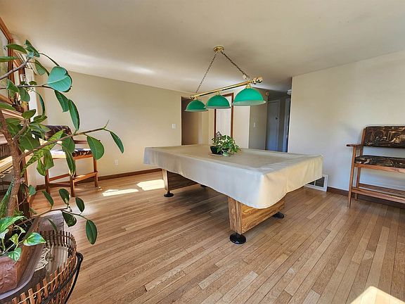 Cathedral ceilingElectrified gazeboRock wallsFamily game roomPicture window