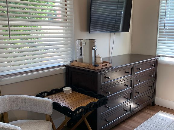 Fully stocked kitchenettePrivate back unitLg smart tvPottery barn furnitureElectronic standing deskLg washer and dryerDirect access