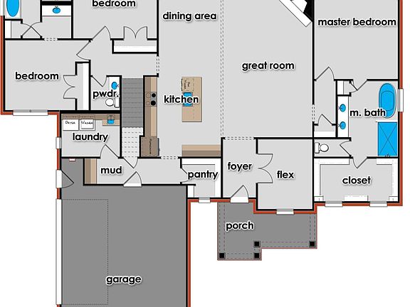 Mudroom off the garageLarge lotExtensive trimKitchen with islandOversized laundry roomWalk in pantryCustom cabinets