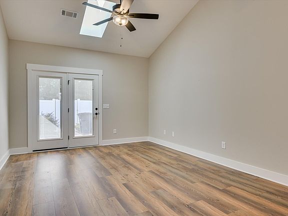 White vinyl fencingFloored attic spaceShaker style cabinetsCovered patioVaulted great roomStorage roomLarge laundry room