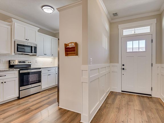 Custom built townhome less than 3 years old. Open floor plan and upgraded tile flooring in both baths. Large vaulted great room with skylight and dining area with counter seating at kitchen. Beautiful granite countertops in kitchen and baths; subway tile backsplash in kitchen with white shaker style cabinets. Large laundry room with cabinets and lots of floored attic space. The back covered patio surrounds a cute fenced in back yard with white vinyl fencing and a storage room. This home is super clean and ready for a new owner. These townhomes are walking distance to shopping and restaurants, convenient to Exit 5 on I-20.
