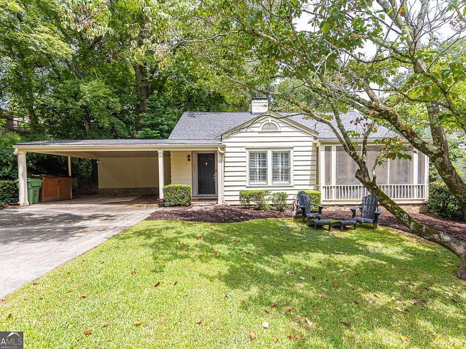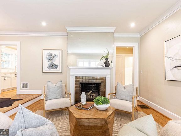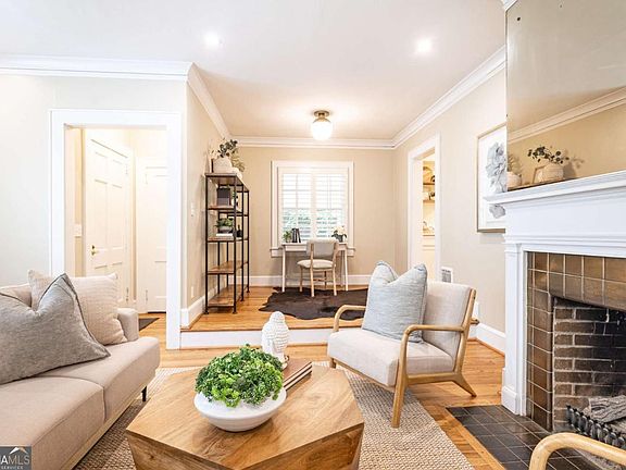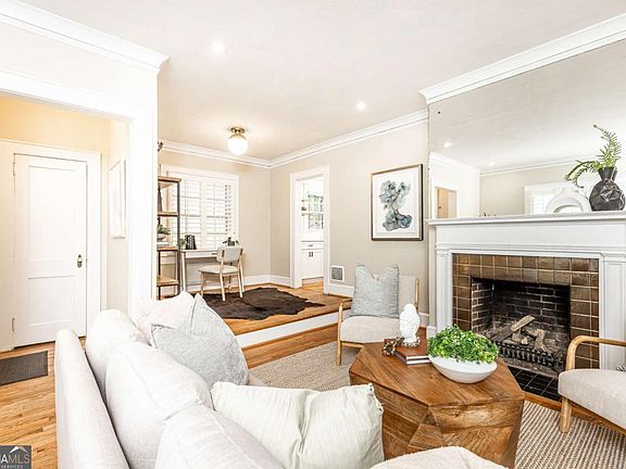 Set on a quiet street in sought-after Peachtree Heights East, just steps to Christ the King School and the beloved Duck Pond, this inviting home offers over 2,000 square feet of living space in the heart of Buckhead-blending historic character with modern updates. A welcoming front entry opens to a fireside living room, while a cheerful screened porch on the side is perfect for relaxing and taking in the neighborhood. Original hardwood floors and vintage crystal door handles add timeless charm throughout. The renovated white kitchen features quartz countertops, stainless steel appliances, and a pantry, opening to an expansive back family room with views of the flat backyard. The main level also includes an office area, full dining room, a charming period blue tile Jack-and-Jill bath, a guest room, and a generous primary suite with his-and-her closets, a built-in window desk, and a double vanity with quartz countertops and hexagonal tile flooring. The finished basement offers a spacious living area with a bar, microwave, and fridge, a separate bedroom, full bath, and abundant unfinished storage. Thoughtful upgrades include recessed lighting and new modern fixtures. Outside, a level backyard and patio provide a comfortable setting for entertaining or play. With walkable access to parks, schools, and Buckhead's best amenities, this home offers an unbeatable combination of charm, location, size, and value. Don't miss your opportunity to get into this neighborhood for a great price!