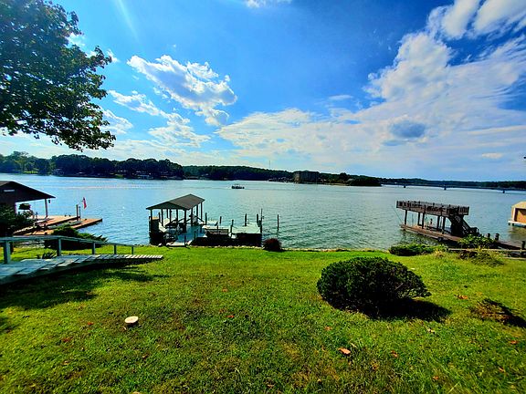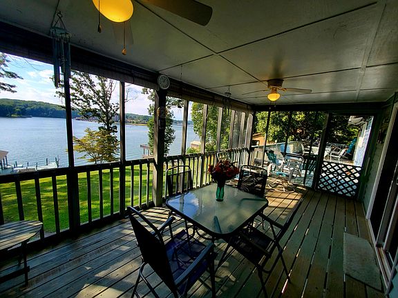 Great main channel waterfront home on a gently sloped waterfront lot with amazing wide Sunset views! Great ranch style floor plan features 3 Bedrooms ( one is a Master wf bedroom), 2 baths on the main level. This level also offers an eat in kitchen, living room with fireplace and a covered screened in porch as well as open decking overlooking the waterfront and views ( perfect for entertaining. The lower level of the home offers a spacious Recreation room which walks out onto the concrete patio overlooking the lake. There is also a laundry/storage room as well as a generous workshop and full bathroom. Paved driveway leads to the concrete pathway to the dock., The generous dock has lots of seating, ( part covered and part open), 2 jet ski lifts, floater and covered boat hoist. Short term rentals are allowed in this subdivision. Community has a swimming pool and tennis courts within easy walking distance of this home.