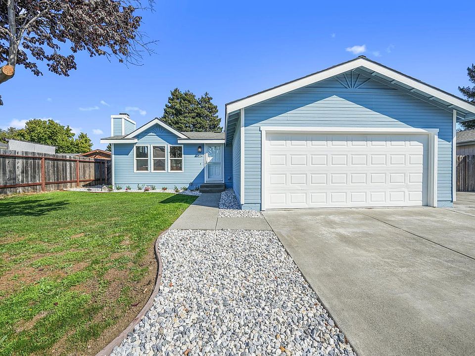 Step into a story of comfort and style with this meticulously renovated 3-bedroom, 2-bathroom home where every detail has been thoughtfully crafted for contemporary living. From the moment you enter, vaulted ceilings create an expansive, airy ambiance, inviting you to explore the open layout that seamlessly connects each inviting space. The heart of this home is undoubtedly the stunning new kitchen, a culinary dream featuring sleek new cabinets, gleaming countertops, and state-of-the-art appliances that are ready to inspire your inner chef. Imagine preparing delicious meals and gathering with loved ones in this bright and functional space. Throughout the home, new floors and baseboards provide a cohesive and fresh aesthetic, leading you to beautifully updated bathrooms that offer a spa-like retreat. Every corner reflects a commitment to quality and modern design, ensuring a move-in ready experience. Beyond the interior, a large back patio beckons, offering the perfect extension of your living space. Whether you're entertaining friends and family or simply seeking a tranquil spot to enjoy the outdoors, this patio provides a versatile oasis. Convenience is key with an inside laundry area, making everyday chores a breeze, and an attached 2-car garage provides ample parking.