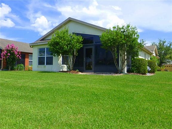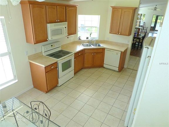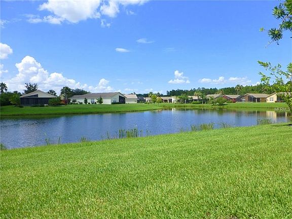 Waterfront BORDEAUX model. This home has STUNNING northerly facing POND VIEWS from the living & dining rooms, lanai & master bedroom. It has an OPEN CONCEPT floor plan that includes two bedrooms, two bathrooms, a den & a TILED floor lanai enclosed as a four season room. The interior has been FRESHLY PAINTED. There is CERAMIC TILE in the kitchen, LAMINATE PLANK FLOORING in the living & dining rooms, NEW CARPET in both bedrooms and den. Kitchen features recessed lights, PULL OUT drawers in the lower cabinets, 42 inch upper cabinets & formica countertops. Master bathroom includes DUAL SINKS & RAISED VANITY. Indoor laundry room. Garage floor is painted with EPOXY paint for easy cleaning. This is one of the few EXPANSIVE WATER VIEWS on the market today. It is competitively priced to sell quickly.