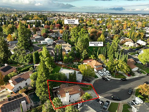 Beautifully Updated AND Ideally Located, this 3-bedroom, 2.5-bath, 1,725 sq ft home sits on 0.16 acre in a peaceful cul-de-sac around the corner from Woodstock Cir Park & Playground. Recent improvements incl. fresh interior paint in Origami White and Sealskin accent walls, new baseboards, oak laminate flooring on the main level, upgraded interior doors, refreshed bathrooms, updated lighting, and a newly refinished kitchen with painted cabinets and newer Samsung appliances. Newer carpet upstairs! All dual-pane windows, sliders, & exterior doors were replaced in 2022-2023 w/a transferable 20-year warranty. Roof repairs completed. This Pie-Shaped lot offers two spacious backyard areas perfect for entertaining on both sides! There's a composite deck, metal pergola, established redwoods & palms! Dog run! Concrete pad on front & back side of double gate for RV, car, boat, etc. Refrigerator, washer, dryer, 5 yr old hot tub, & shed all convey. HOA is just $20/month for park/playground upkeep. Up the street are the famous Vacaville Factory Store Outlets! Enjoy downtown Vacaville happenings, sports facilities, schools, restaurants, retail, Kaiser, NorthBay. Minutes to Hwy 80/12/113 & Travis AFB. Perfectly situated btwn San Francisco & Sacramento for easy commuting & an ideal lifestyle!