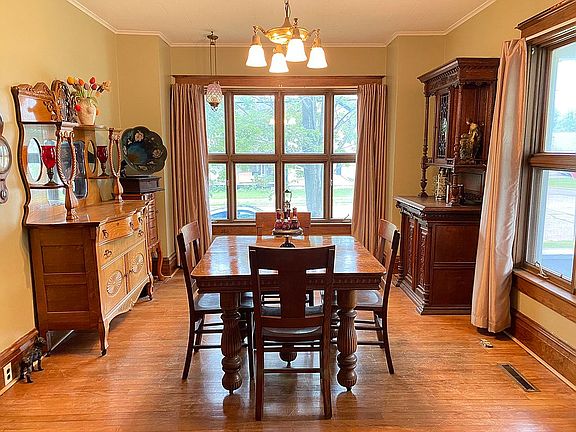 IN LOVE WITH YESTERYEAR? You can return to a quieter and gentler place where pride in family and home is evident by this well-cared-for home and neighbors who pause to talk to one another. We have a solid 3-4 BR, 1.75 BA home with everything you could want for your family, 2 detached garages, new Pergo flooring in kitchen, formal dining room, tin ceiling in living room, deck, beautiful front porch, appliances, ceramic tile flooring in bath, and wet bar in lower level.