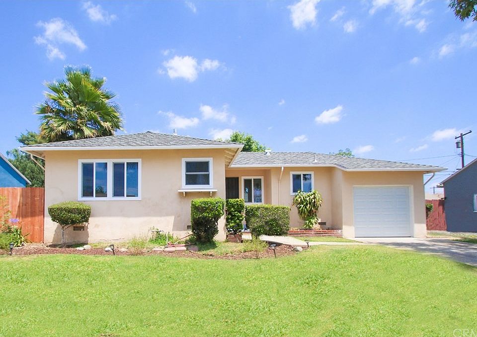 Cute two bedroom one bath La Habra Home. Newer roof, fresh paint inside, redone original wood floors thru out Living room and bedrooms, In kitchen and bath room new laminate wood like flooring, new light fixtures, new gas stove, new wall heater, new sink and toilet in bathroom. Most windows are new. This is a great backyard for entertaining with a new fence for privacy. Single garage door is new as well.
