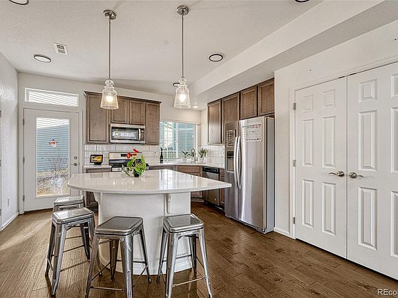 Welcome home!! Gorgeous Floor Plan... Just Needs Some TLC, Needs New Carpets and It Will Shine!! 4 bedroom 3 bathroom 2-story home situated on a premium homesite! The main level hosts a chefs' style kitchen with granite countertops and eat in island, that overlooks the dining and great room. New LVP flooring covers the main level and the additional clearstory windows provides an abundant of natural light! Step out to your back yard oasis that features New Bathroom Stone Counters, Pie Shape patio, private fencing. Upstairs you will find your owners' suite equipped with en-suite bathroom with upgraded granite countertops, tile, cabinets, and features a huge walk in closet. There is an additional bedroom, full upgraded guest bathroom and laundry room conveniently located near the bedrooms. 4th bedroom or a grand Room on the Third Floor. The garage is a large 2-car to ensure you can store your toys! The home is steps away from a pocket parks. Easy access to E-470, Denver International Airport, Downtown Denver, Anschutz and DTC. Great Opportunity!