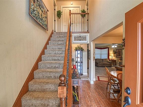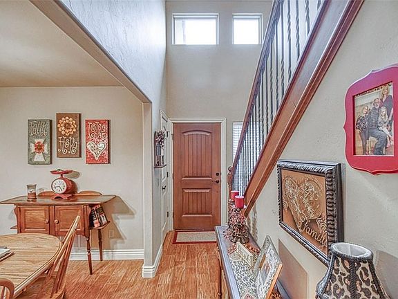 Beautiful Home located close to I-35, shopping, Tinker & More! This home has 4 Bedrooms (2 have en Suite Baths) 3 Baths total. There is a Big Game room or 2nd living, Big Yard, 12X16 shed(workshop), and a 12X28 covered patio just waiting for your family! Tons of storage throughout, a built in Jewlery/shoe cabinet, Great Kitchen, and nice size rooms. The garage walls are insulated, there are 2 HVAC Units, A gate that gives back yard access, and large attic storage off the top floor game room.