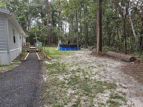 2.66 acres that are 3 individual lots. Wooded, private, paved road,gate at entrance. New in the past 3 months: whole house chlorination/ softener system by culligan, well pump, ac/heat pump, she'd, rear deck, pool, upgraded filter, driveway, washer, dryer, refrigerator, stove. All new flooring throughout entire home. Metal roof, freshly painted master bathroom and kitchen. Did a lot of tree clearing away from home. 30 amp rv hook up and area. No neighbors in front or rear, woods between side neighbors. Very quiet, no barking dogs!. Property off a paved road. Very clean!