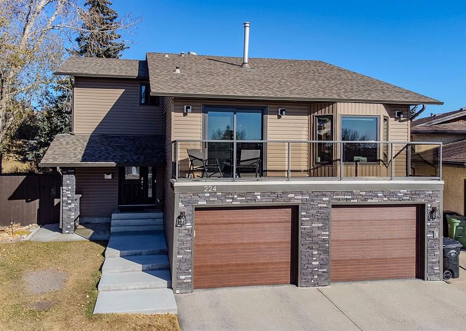 Nestled in a serene cul-de-sac in Calgary’s family-friendly Ranchlands community, 224 Ranchridge Bay NW is a beautifully maintained 4-level split on an expansive 11,603 sq ft(over a quarter acre) pie-shaped lot, enveloped by mature trees that ensure ultimate privacy while creating a playful paradise for kids—with gentle slopes perfect for winter tobogganing or summer slip-and-slide adventures. Step inside the welcoming large foyer, where the main level unfolds into a cozy family room with sliding doors to the deck and sprawling backyard, alongside a versatile den/office, convenient laundry room with direct deck access, and a 2-piece bath. Ascend to the upper level to discover three generous bedrooms and two full bathrooms, —including the primary suite with a private balcony overlooking the lush yard—highlighted by a spacious 3-piece ensuite with luxurious heated floors. Over the past 16 years, this home has undergone extensive thoughtful updates: a cozy gas fireplace in the family room, furnace, modernized bathrooms, a stunning main-floor renovation opening the living and dining areas to a gourmet kitchen featuring a spacious island, energy-efficient exterior doors and Pela windows throughout the finished living spaces, a brand new water heater, 2017 shingles, 2018 insulation-backed vinyl siding, refreshed eaves, fascia, soffits, and stone accents, durable Duradek and railings on balconies, replaced much of the fencing, and sleek modern garage doors to boost curb appeal. The oversized garage boasts epoxy-coated floors, a 240V outlet, and room for two large vehicles. Just steps from public and Catholic elementary schools, abundant amenities, scenic walking paths, and lush community parks, this move-in-ready gem offers the perfect blend of comfort, style, and outdoor bliss.