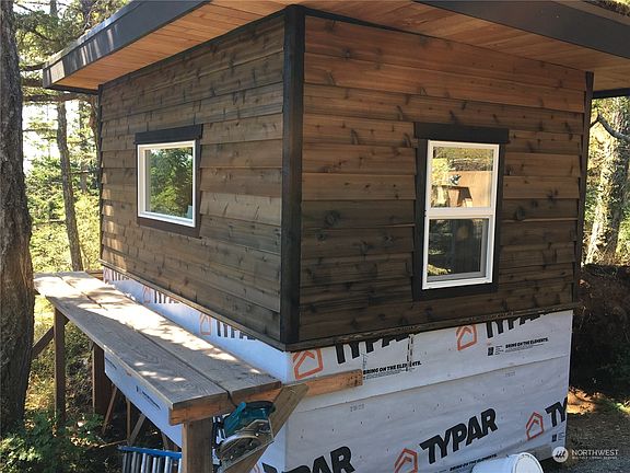 This sunny five acre Olga view property has a small unfinished cabin. The driveway is in place and the clearing for the view has opened views to the south/southeast as well as Mt Constitution to the east. There is community water on the property. The subject property sits perched just above a community pond. There is a second driveway on the north as well, off Salish Way--also with a water pipe. This beautiful property is close to the Olga Dock and the soon-to-be-reopened Olga Store, and very close to the southern border of Moran State Park. Secluded and serene, on a knoll with numerous building locations; this is the perfect Olga property.