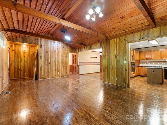 Nice home on a large private lot with mature trees. Secluded away from traffic. Open living room with stone fireplace and vaulted ceiling. Formal dining room. Spacious rooms. Home offers natural daylight sun tunnels and skylight. Recently refinished hardwood floors in kitchen, dining and living room. Full unfinished basement with garage door for unlimited possibilities. Conveniently located between Fletcher and Hendersonville. Only minutes to schools, hospital and shopping.