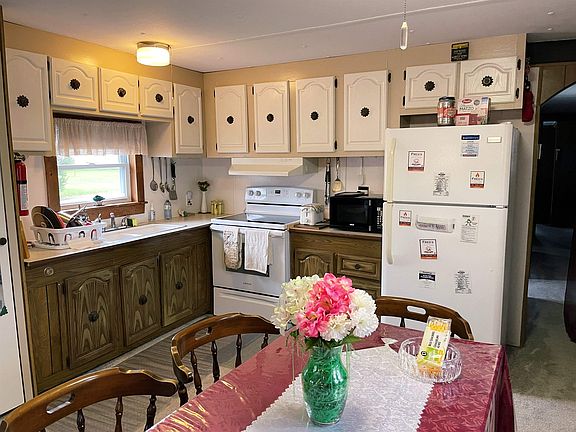 Easy Breezy living! Super close to the Walmart, Pharmacy, Price Chopper!! 3 bed 2 bath with updated flooring and more. New electric range! Newer Thermo Pride hot air furnace and updated H2O. Windows are Thermo as well. Metal siding and asphalt shingle roof all in great shape. Nicely laid out with 2 beds on one end and Primary with its bath on the other. Sellers have pride in their home and it shows. Some furnishings will stay. 55 and older park. Must be owner occupied and subject to park approval, application on file. Please remove shoes.